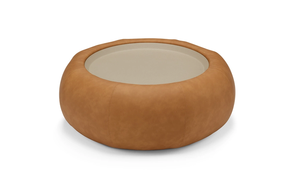 Para stolików kawowych wyrażająca kontrastujące, a zarazem uzupełniające się charaktery: jeden – liniowy i solidny, drugi – zaokrąglony i miękki. Pierwszy stolik, o minimalistycznym designie, wykonany jest w całości z metalu i dostępny w różnych wykończeniach i kolorach: błyszczący chrom dla trzech nóg oraz matowy, piaskowy kolor dla blatu o średnicy sześćdziesięciu dwóch centymetrów. Drugi stolik posiada ten sam metalowy blat, zintegrowany z tapicerowaną strukturą pokrytą ekoskórą, z ozdobnymi przeszyciami i pionowymi pasami.